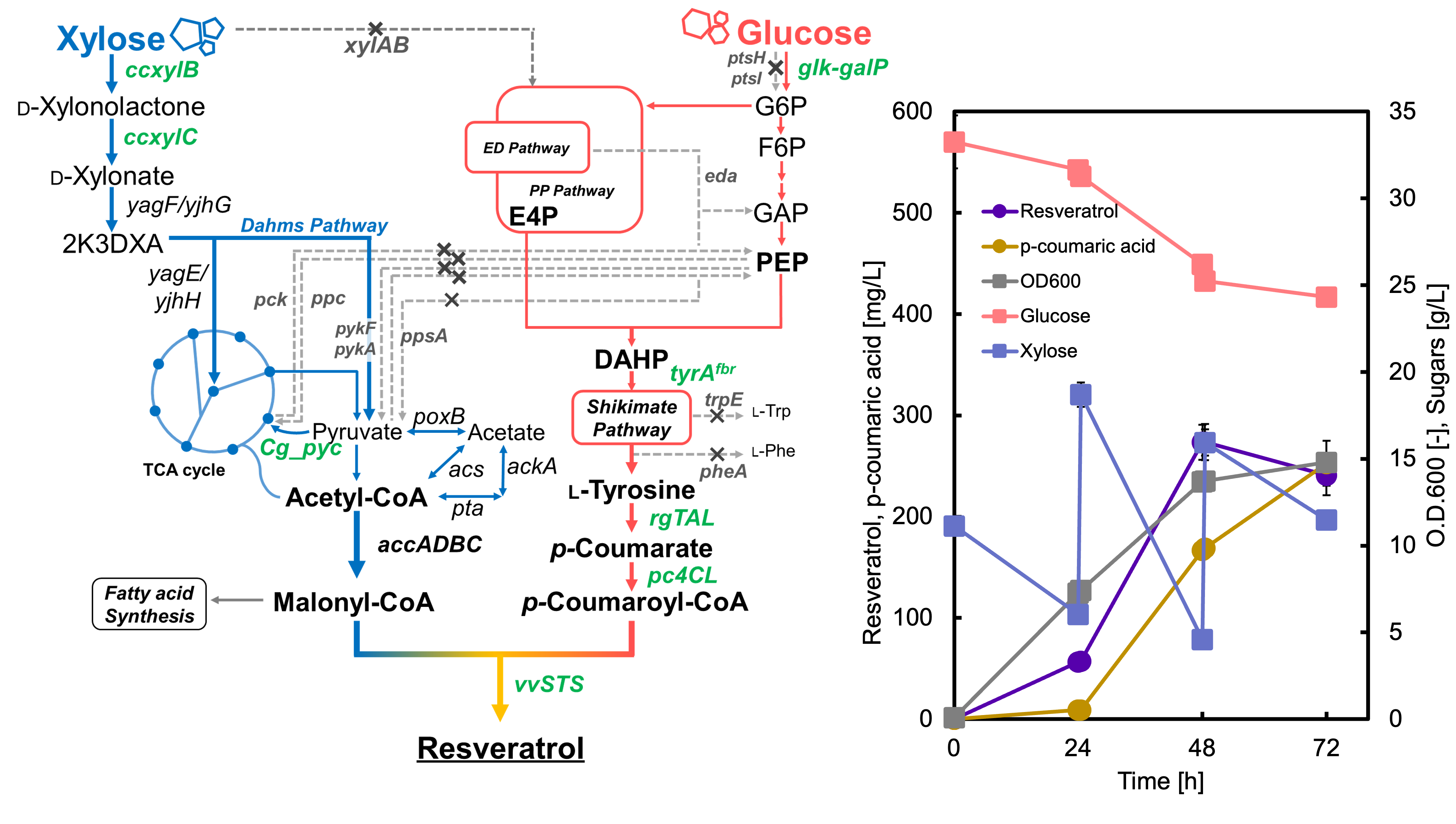 Metabolic engineering for resveratrol production based on modularization of metabolic pathways in Escherichia coli, Journal of Agricultural and Food Chemistry, 73, 11878-11888