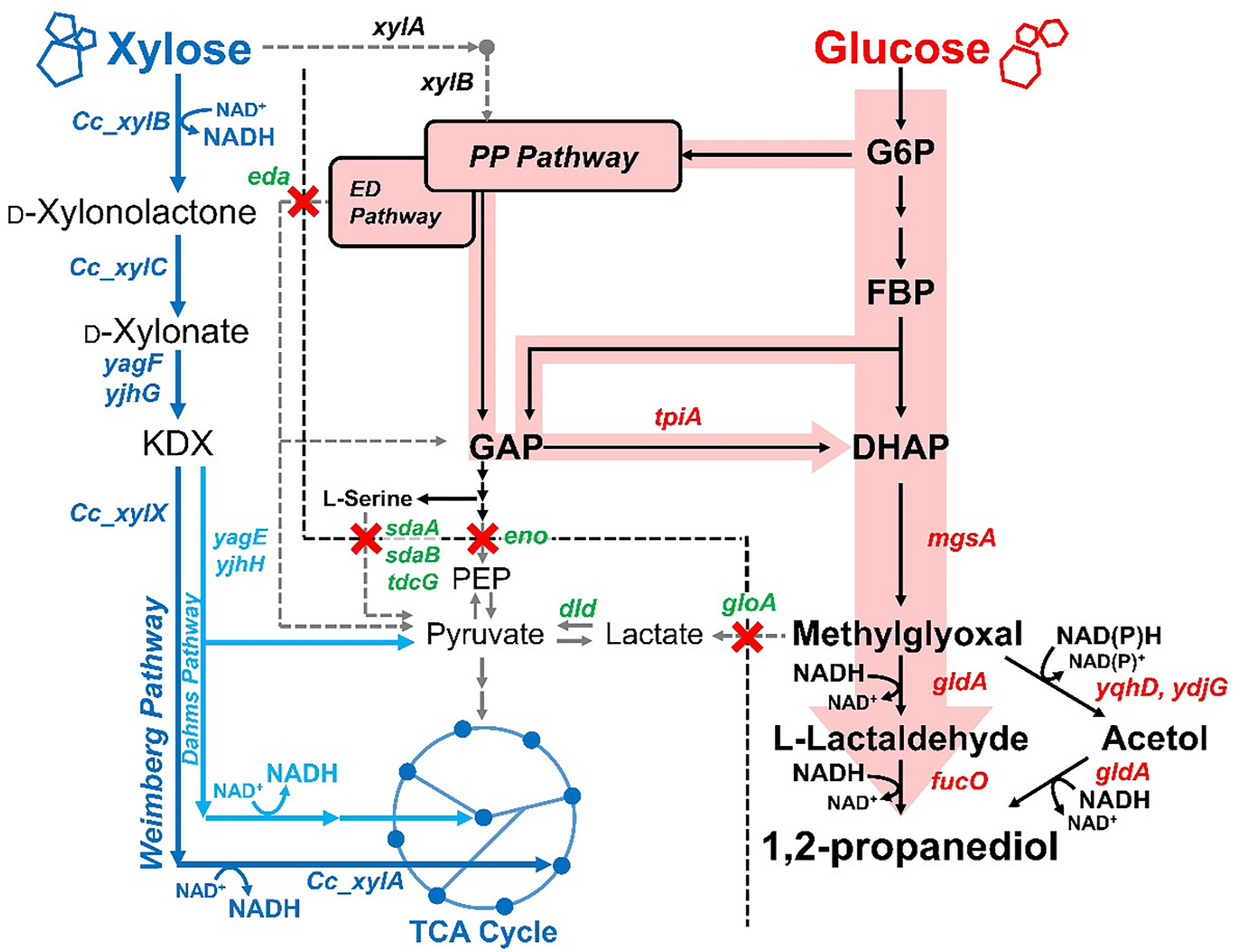 - Shinkawa, S., Okano, K., Yoshida, S., Tanaka, T., Ogino, C., Fukuda, H. and Kondo, A. (2011) Improved homo L-lactic acid fermentation from xylose by abolishment of the phosphoketolase pathway and enhancement of the pentose phosphate pathway in genetically modified xylose-assimilating Lactococcus lactis, Applied Microbiology and Biotechnology, 91(6), 1537-1544
