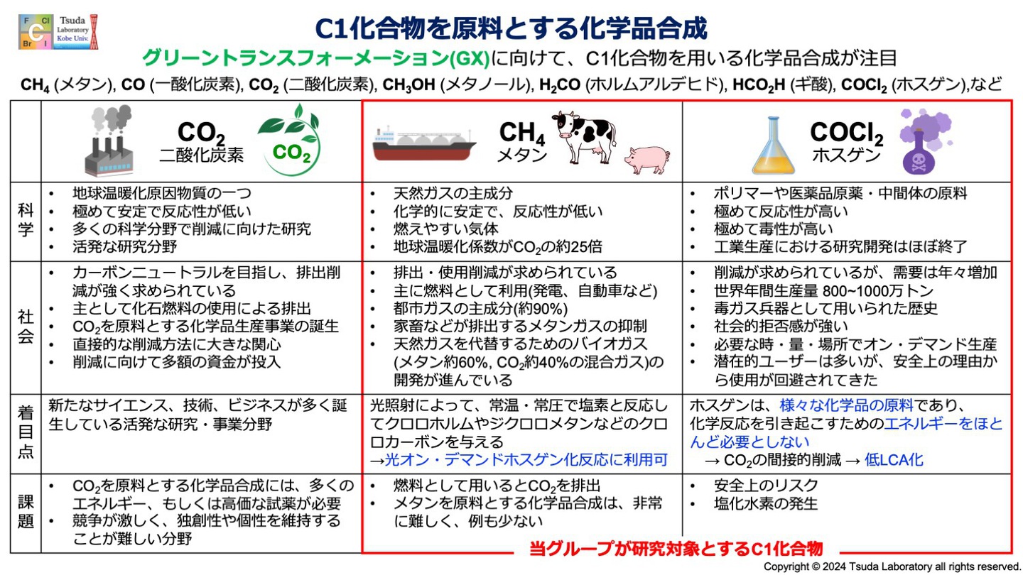 津田研究室は神戸大学理学研究科にあります。また、中国の内蒙古医科大学薬学院には、当グループとの国際共同研究チームの研究室があります。当研究グループは、国内・国外の企業、大学、研究所などと連携して、活発な研究を行っています。そのような理由から、アカデミックの知識だけでなく、社会で役に立つ知識、技術、そして経験を身につけることができます。基礎学術研究に加えて、産学連携および国際連携を積極的に推し進める当グループの研究・教育環境は、学生や研究者の皆さんに世界レベルでの活躍の場を提供でき、また幅広い研究者のネットワークを身につけてもらうことが可能です。また、学生や研究者の皆さんの研究や生活そして進路などを、研究室レベルでサポートするシステムも充実しています。