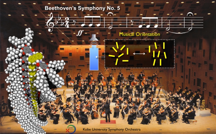 本研究成果は、音楽と物質のミクロレベルでの関わりを理解する上での極めて重要な知見を含んでおり、また、音響ナノテクノロジーのさきがけ研究として、ナノマシン、医療、食品化学、材料化学など様々な分野への応用に期待されます。