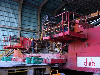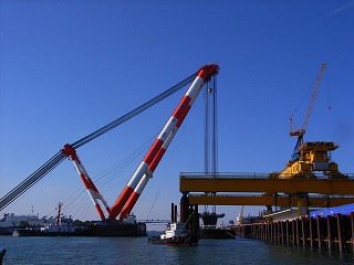 3000tonクレーン船で50mPC桁を搬出中 |