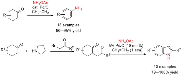 Org. Lett. 23, 2411-2414 (2021). DOI: 10.1021/acs.orglett.1c00036 - Synthesis of Substituted Anilines from Cyclohexanones Using Pd/C−Ethylene System and Its Application to Indole Synthesis