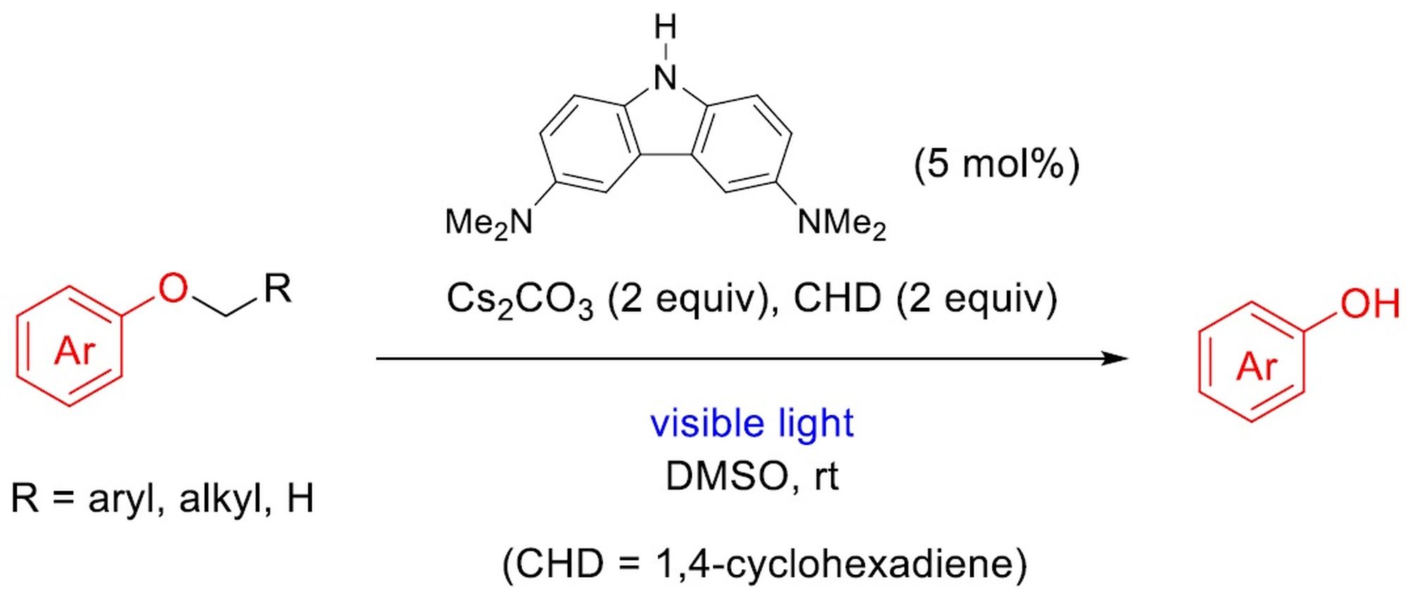 Org. Lett. 23, 1530-1534 (2021). DOI: 10.1021/acs.orglett.0c04056 - Photocatalytic Reductive C−O Bond Cleavage of Alkyl Aryl Ethers by Using Carbazole Catalysts with Cesium Carbonate