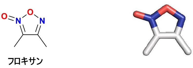 我々が着目している分子はフロキサンというヘテロ芳香環です。かなり特殊な構造をしています(下図)。いかにも「これからNOを出します」みたいな面構えをしていますが、実際に一部のフロキサンはNOを出すことが知られていました。しかし、そのNO放出をコントロールする手段は開発されていませんでした。