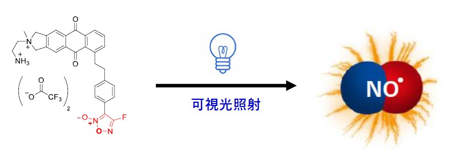 可視光による照射でもNOを放出する分子も開発しております(下図)。