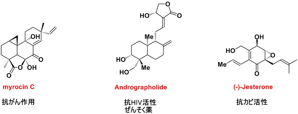 合成法の開発や医薬品・生理実験ツールへの展開、また機能性材料への適用も進めています。