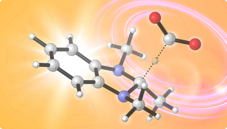 One area involves the development of photochemical reactions and light-responsive molecules. For example, we have worked on photochemical reactions that convert CO2 into other molecules using sunlight (artificial photosynthesis), molecules that emit various colors of light, and compounds whose emission color or intensity changes in response to external stimuli. Light is the only virtually inexhaustible energy source available on Earth. We aim to harness its power to advance environmentally conscious chemistry.