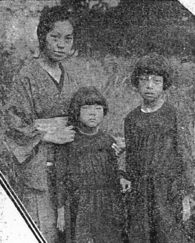 図3 1925年秋の富本一枝とふたりの娘(右が長女の陽、中央が次女の陶)。