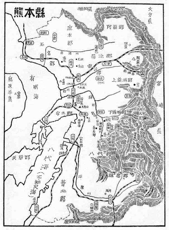 【図01】ふるさと「火の国」1/高群逸枝と橋本憲三が出生したころの熊本県 出典:高群逸枝『今昔の歌』講談社、1959年7月20日、口絵。