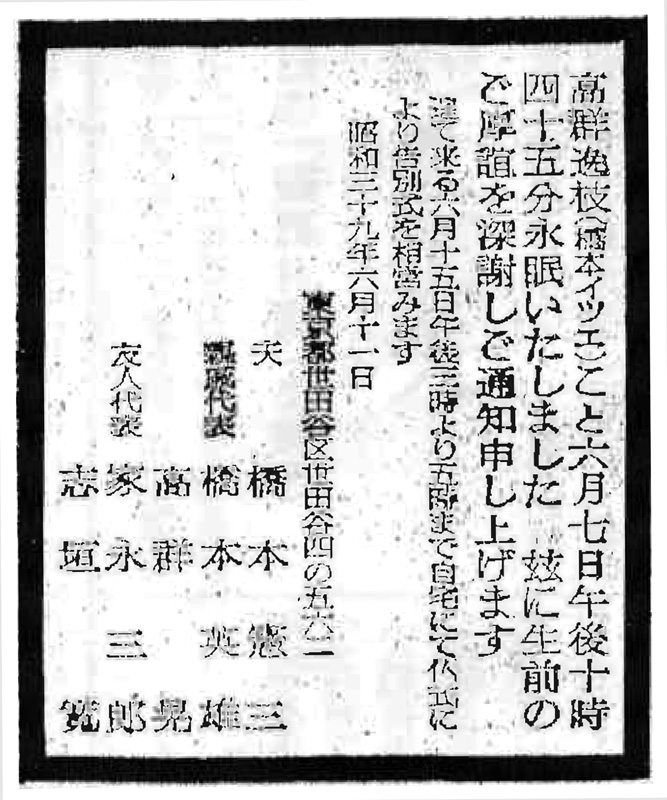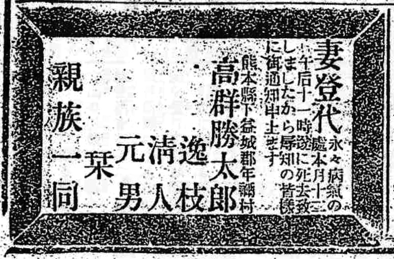 【図12】高群登代子1/『九州日日新聞』の死亡広告