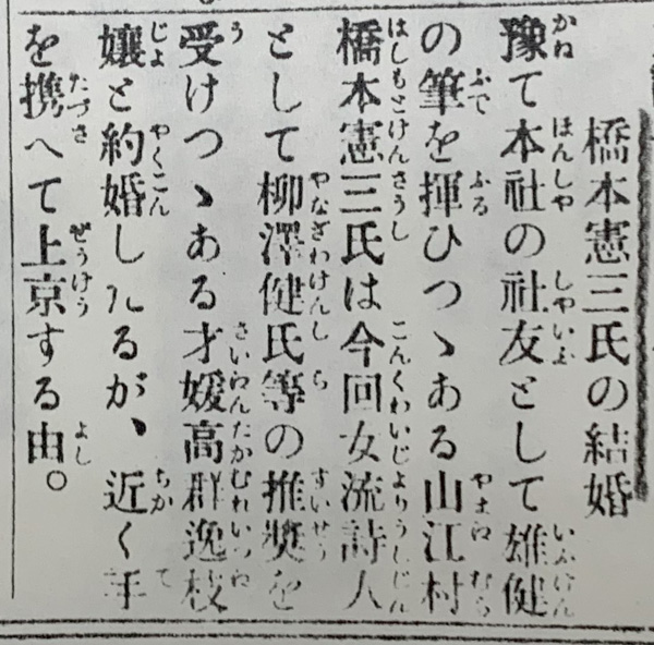 【図32】『人吉時報』に掲載された橋本憲三と高群逸枝の結婚記事