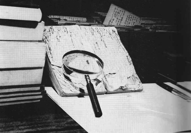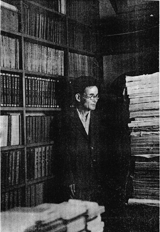 【図39】橋本憲三2/妻の原稿に囲まれて 出典:『高群逸枝雑誌』第2号、責任者・橋本憲三、発行所・高群逸枝雑誌編集室、1969年1月1日、27頁。