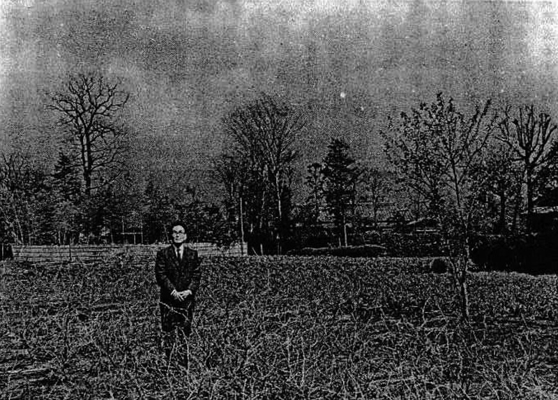 【図40】橋本憲三3/畑のなかから「森の家」を眺める早春の日 出典:『高群逸枝雑誌』第6号、責任者・橋本憲三、発行所・高群逸枝雑誌編集室、1970年1月1日、27頁。