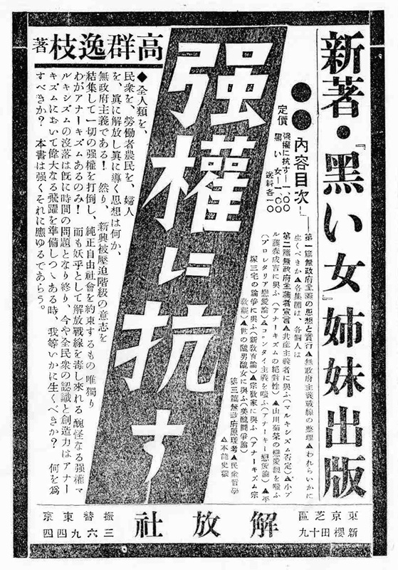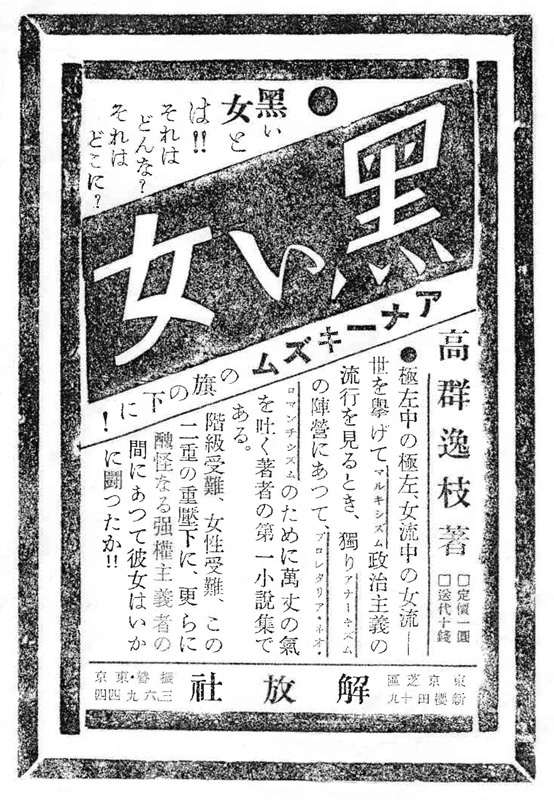 【図64】高群逸枝主宰の無産婦人芸術連盟4/高群逸枝『黒い女』の広告