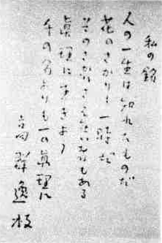【図67】高群逸枝の文と書2/「私の銘」 出典:高群逸枝著・橋本憲三編『高群逸枝全集』(第一〇巻/火の国の女の日記)理論社、1965年6月、口絵。