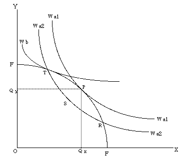 → 社会的無差別曲線WWが,生産可能性曲線と接するように公共財の配分を決定すること