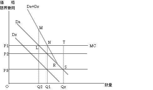 このサービスに対する社会的な需要は Da+Ds で表されるが,便益のスピルオーバーを考慮しない場合,地方団体は Q2 の公共サービスしか提供しないことになり,社会的にみて最適の Q1 に対応する公共サービスを供給することが出来ない。