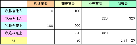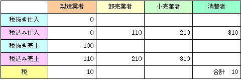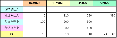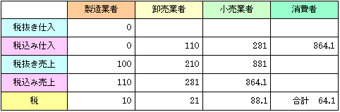課税後価格は(税込み)仕入価格+付加価値+納税義務額 という想定より,