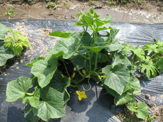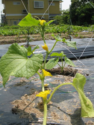 5月15日 キュウリを植えました。品種は「シャキット」です。 今年は雨が多く、気温も低いのでちゃんと大きくなってくれるか心配です。