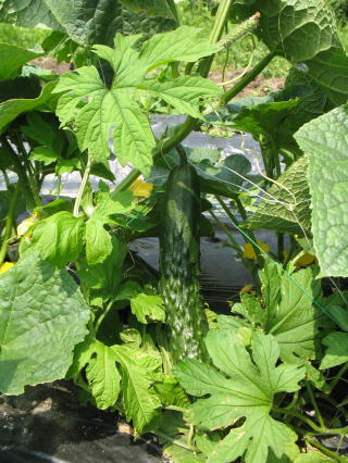 6月21日 少し更新が途絶えていました・・・すいません。 ということで、今年初めてのキュウリが大きくなりました。 1本目のキュウリなのでイマイチ味はよろしくありません。でも、感謝の意を込めて追肥をしておきました。 どんどん美味しいキュウリを着けておくれ〜