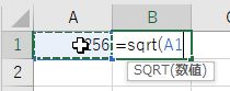 =sqrt(を入力した後,A1をクリック =sqrt(A1)と式を完成してから,Enter キーを押す