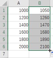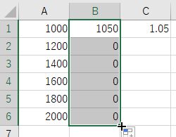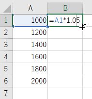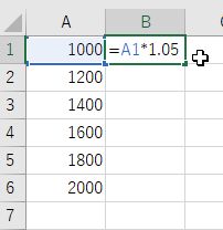 C1 に 1.05 ,B1 に =A1*C1 を入力 B2 から B6 をオートフィル