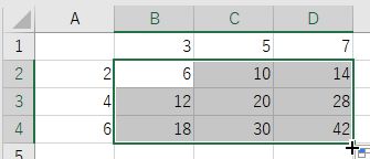 B2に$A2*B$1を入力 C2からD2に横方向にオートフィル