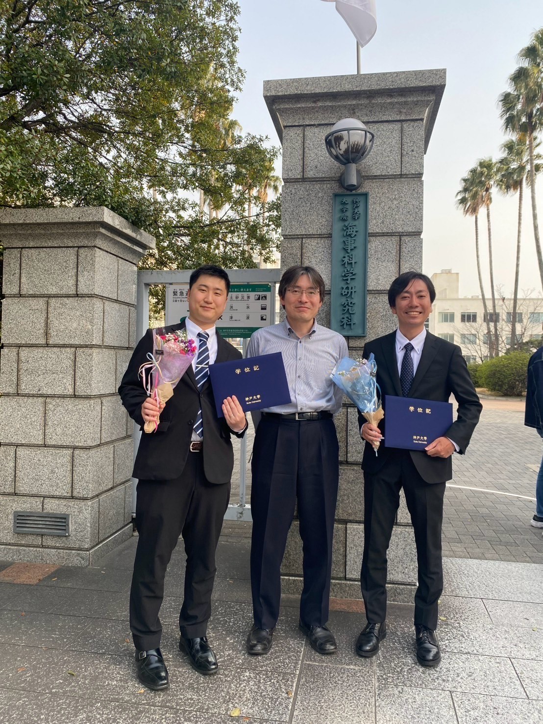 - 2025年3月25日に令和6年度神戸大学学位記授与式が行われました。海事科学研究科堀田研究室よりは学部生1名、博士前期課程1名、博士後期課程2名が卒業しました。皆さまご卒業おめでとうございます。