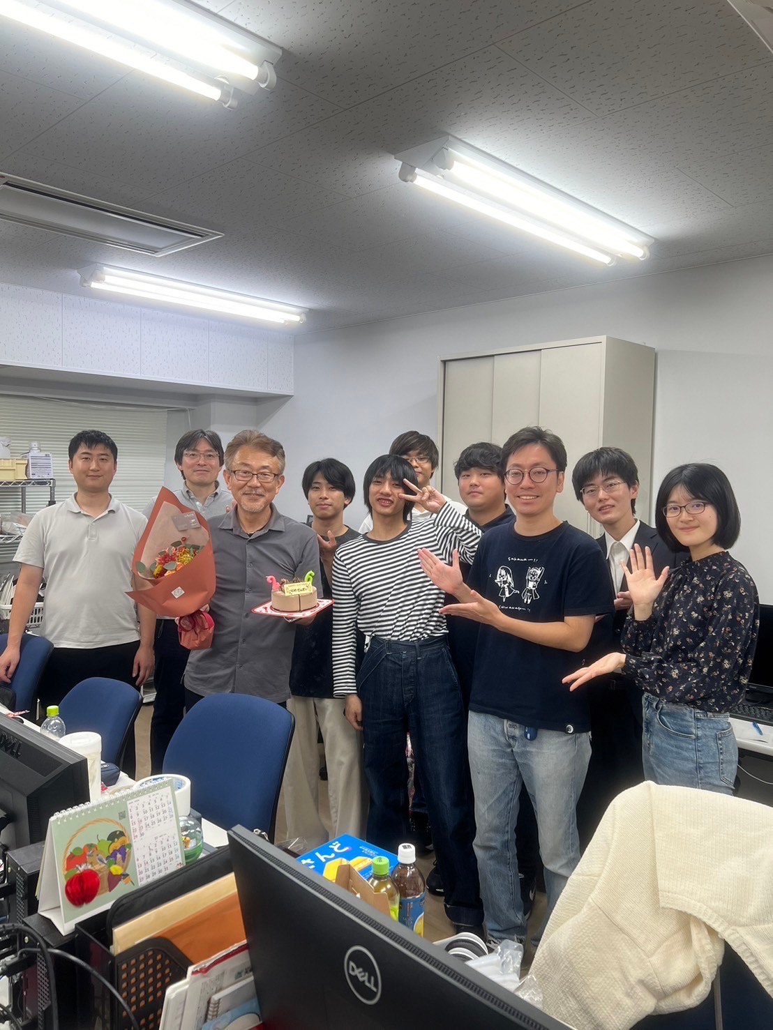 - 2024年10月1日に、9月24日生まれの辻野特命教授と10月1日生まれの堀田教授の合同誕生日会を学生主催で行いました。