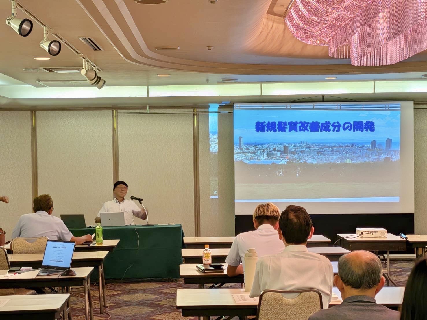 - 2025年7月に辻野義雄特命教授が、第82回繊維応用技術研究会にて、「新規髪質改善成分の開発」について講演を行いました。松本健嗣特命助教も聴講者として参加いたしました。参加研究者や専門家らと活発な意見交換がなされ、今後の研究活動の遂行に有意義な時間となりました。