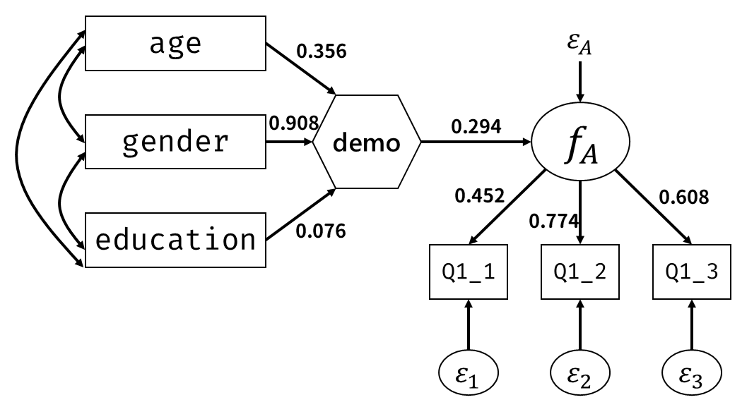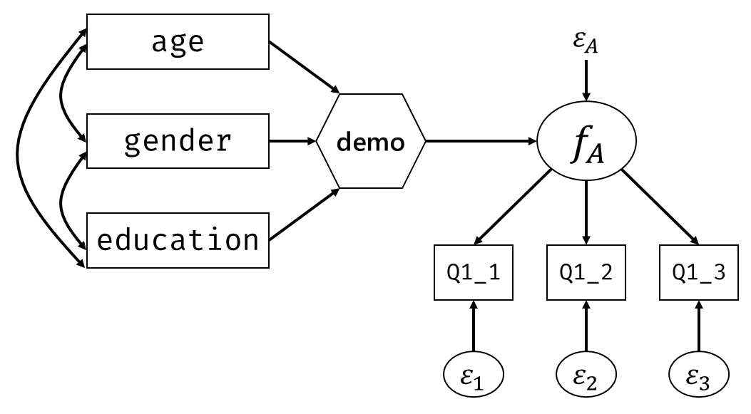 f1 =~ Q1_1 + Q1_2 + Q1_3