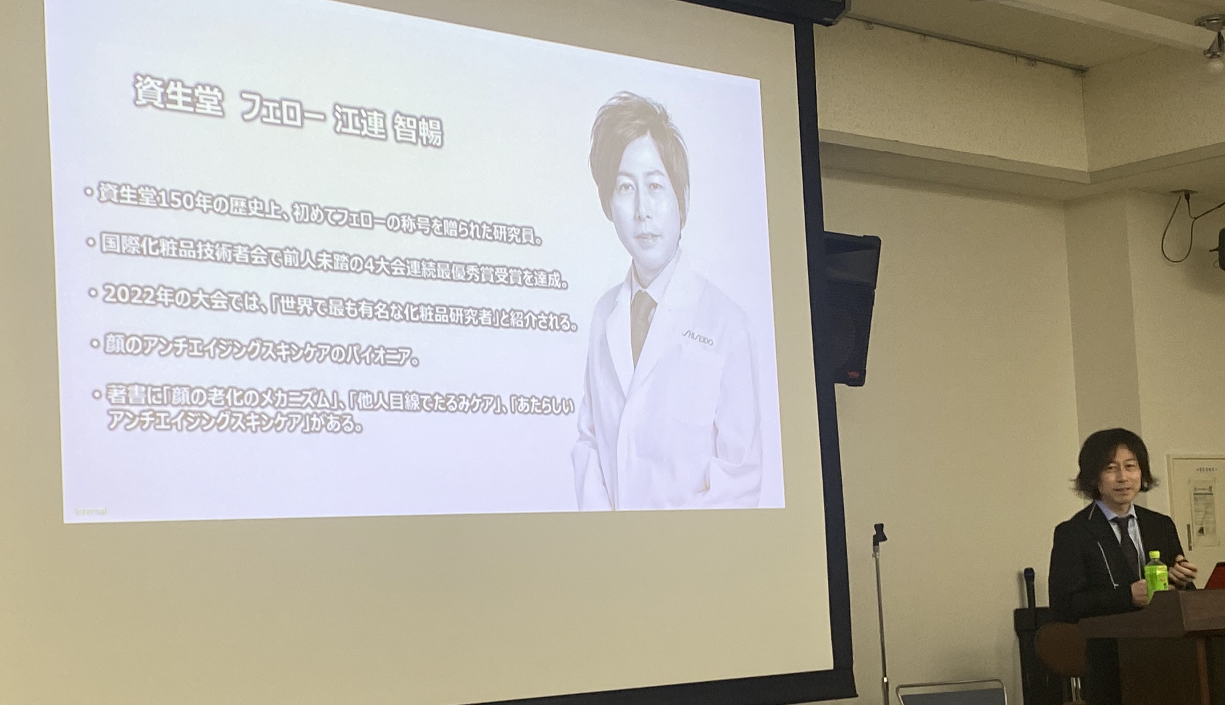 - 2023年11月30日に当講座主催の特別講演会を開催いたしました。当日は、客員教授である(株)資生堂フェローの江連智暢博士をお迎えし、”顔の老化のメカニズム~スキンケア研究の最先端~”についてご講演いただきました。詳細については【こちら】をご覧ください。